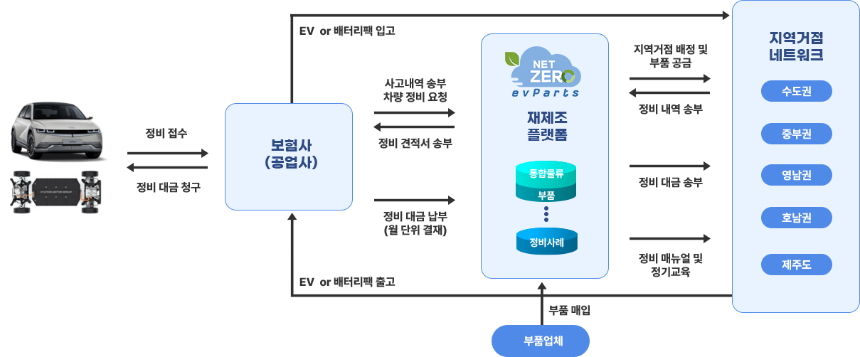 HEV, BEV, FCEV, H2-ICE 등 친환경자동차의 주요부품의 재제조 플랫폼 운영